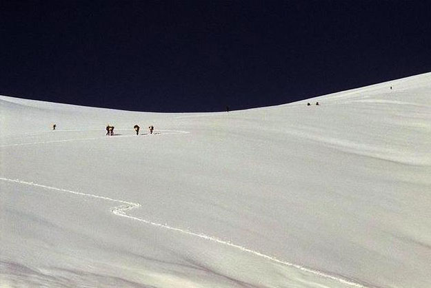 At an astonishing 5,940 metres, this is one of the highest passes in the world connecting the Concordia region with Hushe Valley in Gilgit-Baltistan. From its top one can see K2 and 3 other mountains that are above 8,000 metres. The picture shows top of Gondogoro La looking south towards Hushe Valley.